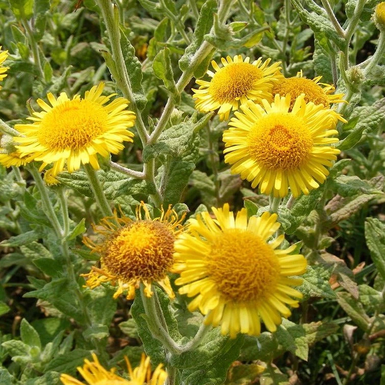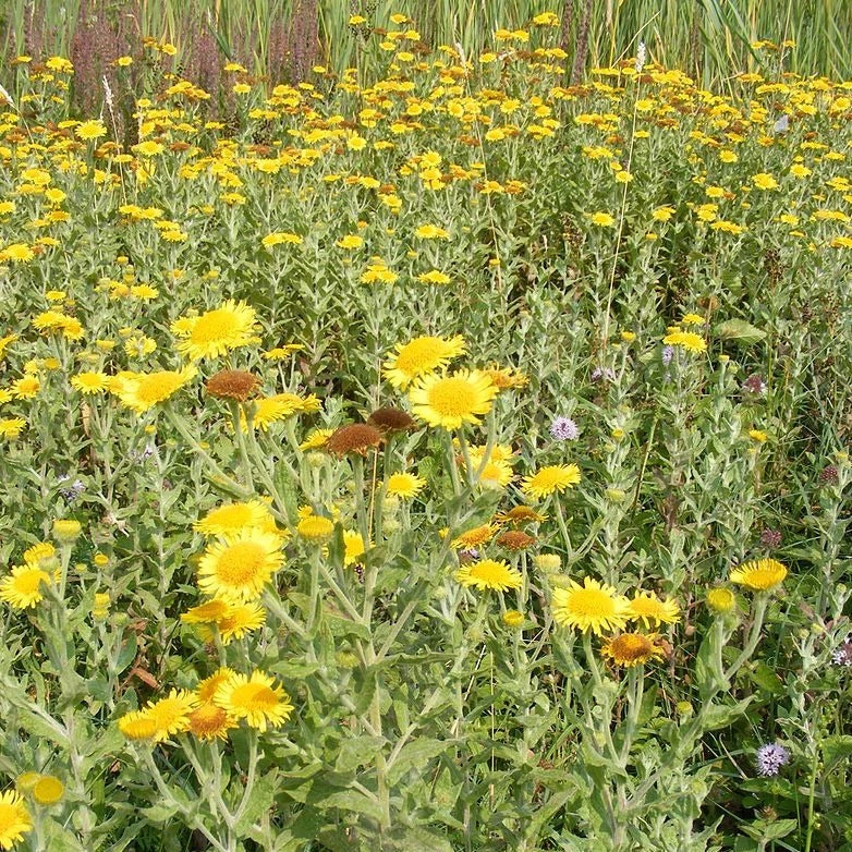 Das Grosse Flohkraut, auch Ruhrwurz genannt ist eine ist eine mehrjährige Wildstaude, die in der Schweiz als potentiell gefährdet gelistet ist. In der Natur findet man sie eher auf feuchten Wiesen und steinigen Bach-und Flussufern, im Garten eignet sich daher ein Plätzchen am Gartenteich oder in sonnigen, feuchten Ecken. Ihre gelben Blüten können hier Schmetterlinge und Wildbienen mit ihrem angenehmen Duft betören.