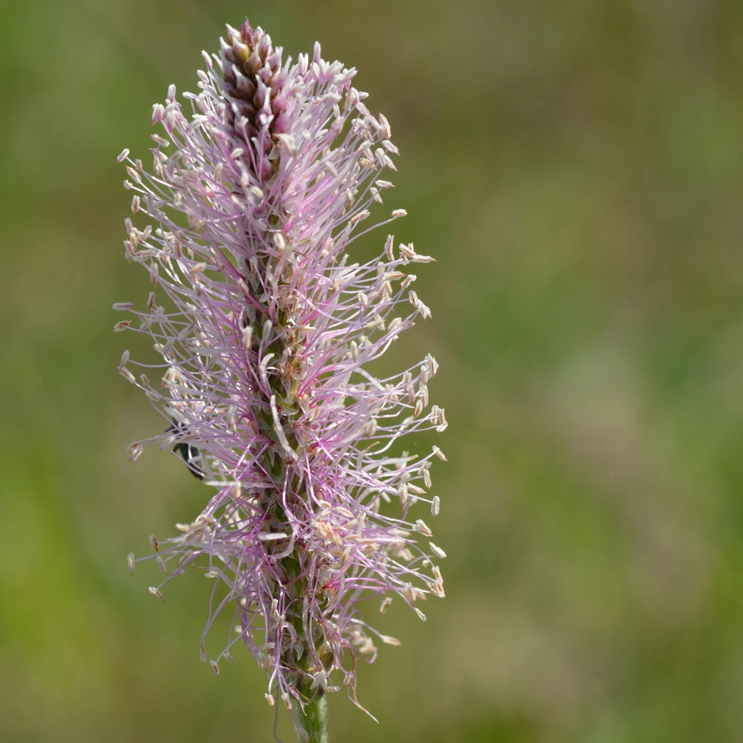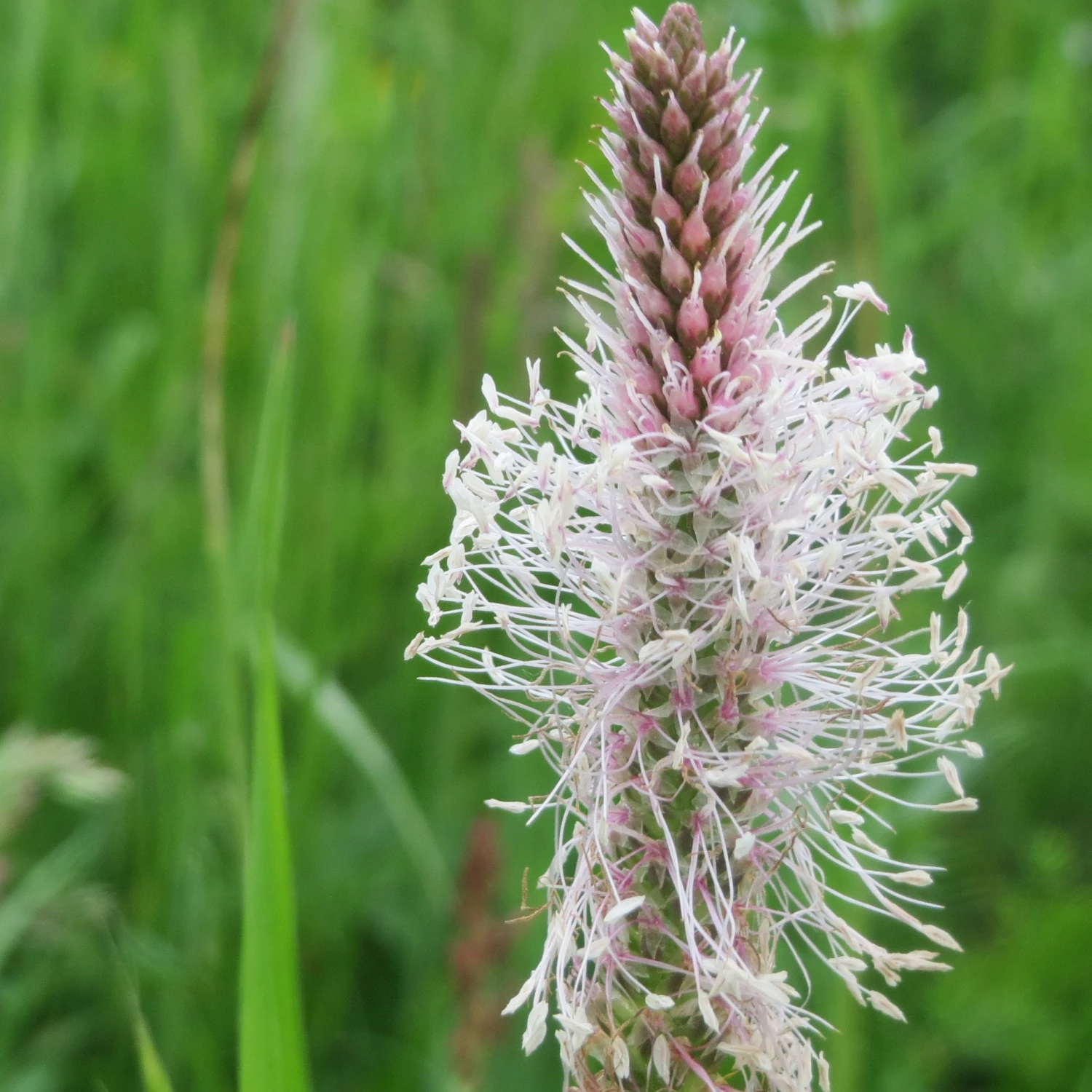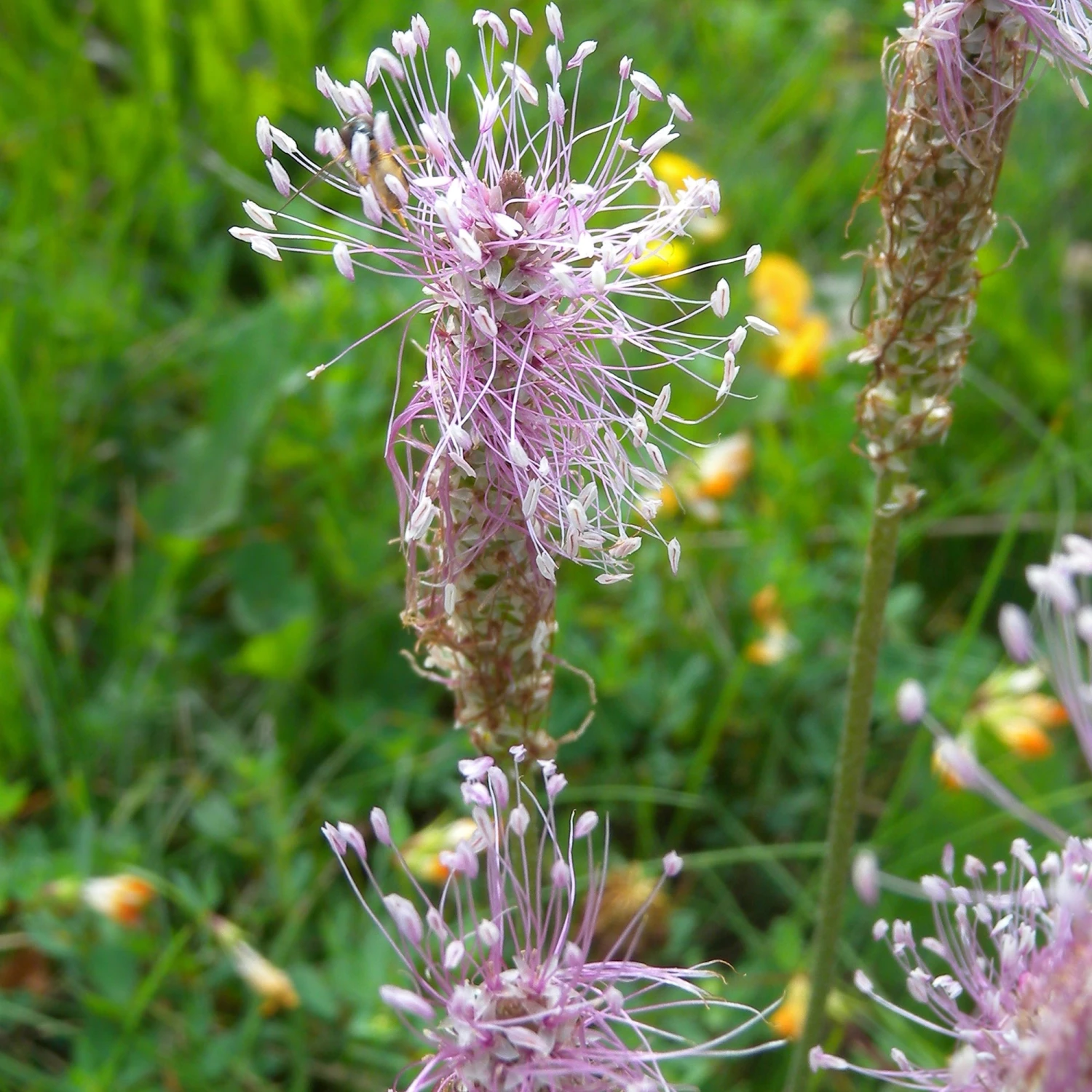 Den Mittleren Wegerich findet man auf Wiesen, Weiden und Wegrändern. Seine breiten Blätter sehen dem Breitwegerich zum Verwechseln ähnlich, sind allerdings behaart. Die angenehm duftenden Blüten sind mit rosafarbenen Staubfäden bestückt, was in voller Blüte fast wie Zuckerwatte aussieht. Er bevorzugt sonnige Standorte.