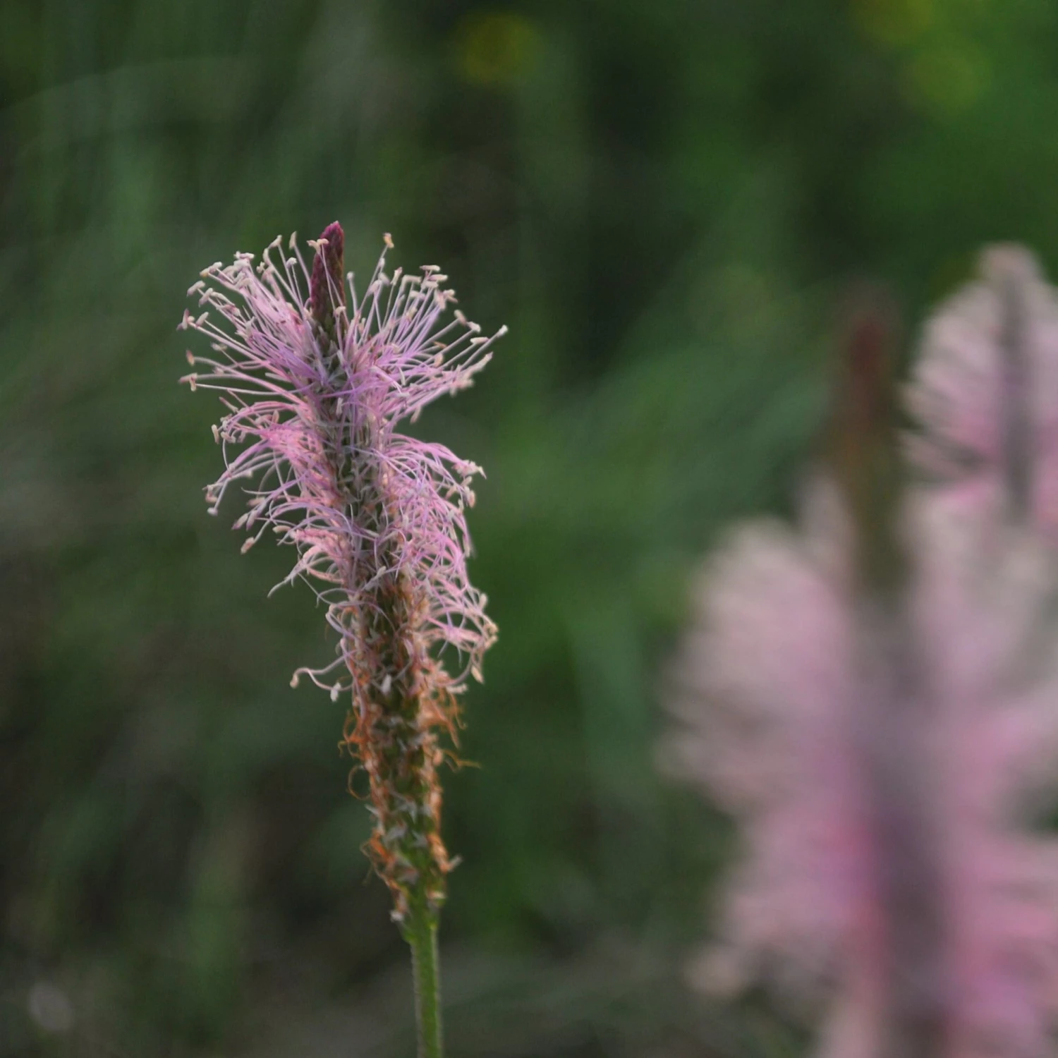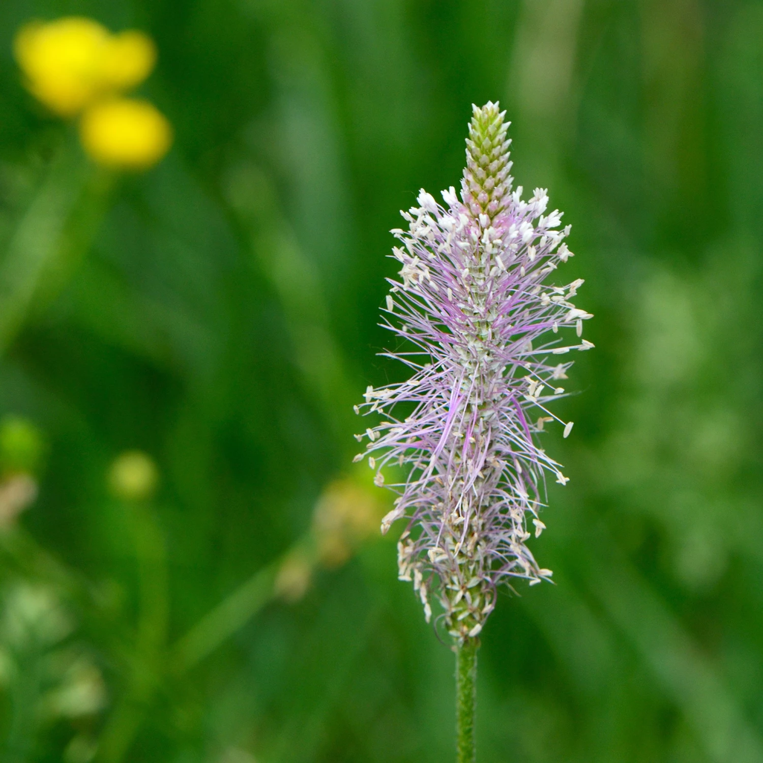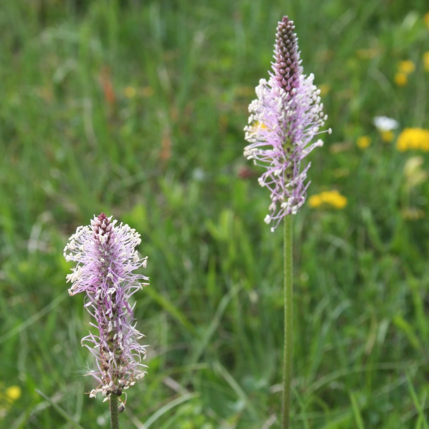 Den Mittleren Wegerich findet man auf Wiesen, Weiden und Wegrändern. Seine breiten Blätter sehen dem Breitwegerich zum Verwechseln ähnlich, sind allerdings behaart. Die angenehm duftenden Blüten sind mit rosafarbenen Staubfäden bestückt, was in voller Blüte fast wie Zuckerwatte aussieht. Er bevorzugt sonnige Standorte.
