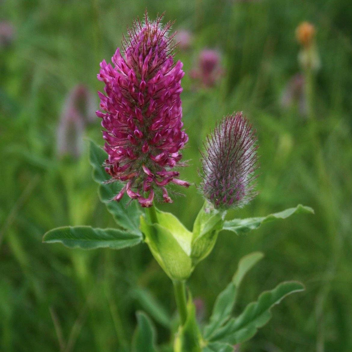 Der Fuchsschwanz-Klee, auch Purpur-Klee genannt, ist eine mehrjährige, krautige Wildpflanze. Ihre Blütenstände sind ca. 3 -7 cm lang und haben einen Durchmesser von ca. 2 – 3 cm. Er wird von Bienen, Hummeln und Schmetterlingen gerne besucht, denn der Fuchsschwanz-Klee bietet reichlich Pollen und Nektar. Oft findet man ihn an buschigen Hänge in warmen Lagen. Er bevorzugt trockene, kalk- oder lösshaltige Böden und kommt auch auf steinigem Untergrund gut zurecht.