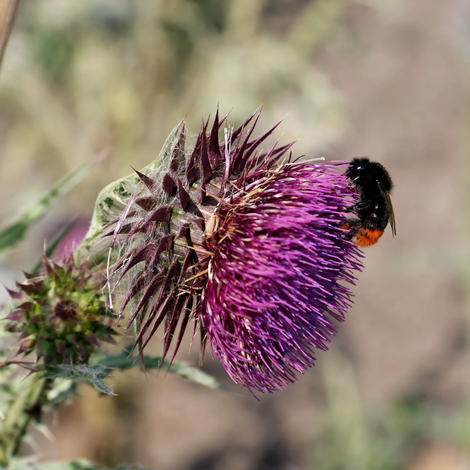 Die Nickende Distel ist eine Halbrosettenpflanze. Das bedeutet, dass sie im ersten Jahr eine Blattrosette und im zweiten Jahr ihren Blütenstand bildet. Ihre kugeligen Blütenkörbe haben einen Durchmesser von 2 bis 6 cm. Nachdem sie Ihre Samenfrüchte entwickelt hat, stirbt die Pflanze ab.
