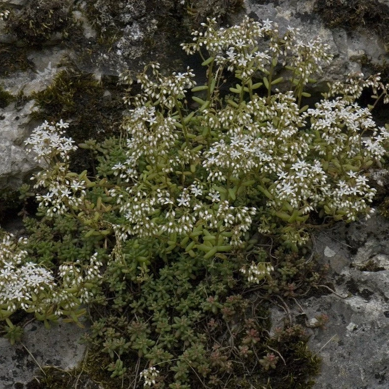 Wer Dinge zum anfassen mag, der ist beim weissen Mauerpfeffer genau richtig. Die Pflanze mit den kleinen, dick-fleischigen, rundlichen Blättchen erfreut aber nicht nur die Tastsinne. Die etwas seltsam wirkende Gestalt lässt gar nicht erahnen welche Schönheit sich mit den zarten, weissen Blüten hervorwagen wird. Besonders in Kombination mit der rötlichen Färbung der Triebe, die gegen den Herbst und bei Trockenheit eintritt ist sie ein wahrer Hingucker und oft verwendeter Bodendecker auf trockenen, gut besonnten Böden. Den Weissen Mauerpfeffer kann man in der Natur an Mauern, Felsen, oder auch zwischen Wegplatten entdecken. Ein besonderes Erkennungsmerkmal ist, dass er nicht an allen Trieben Blüten bildet, einige bleiben steril.