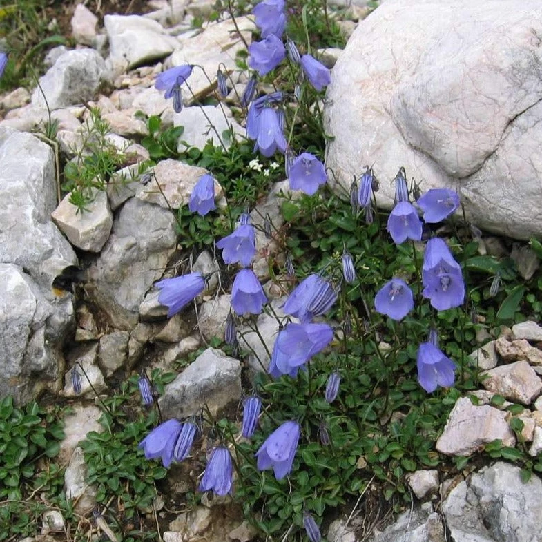 Die Zwerg-Glockenblume, auch Niedliche Glockenblume genannt, ist eine wintergrüne, mehrjährige Wildblume. Sie wächst in Felsspalten, Mauerritzen und gerne an kiesigen Flussufern. Ausserdem gehört sie zu den kalkliebenden Pflanzen. Sie liebt es schön sonnig, obwohl sie auch mit halbschattigen Standorten gut zurecht kommt.